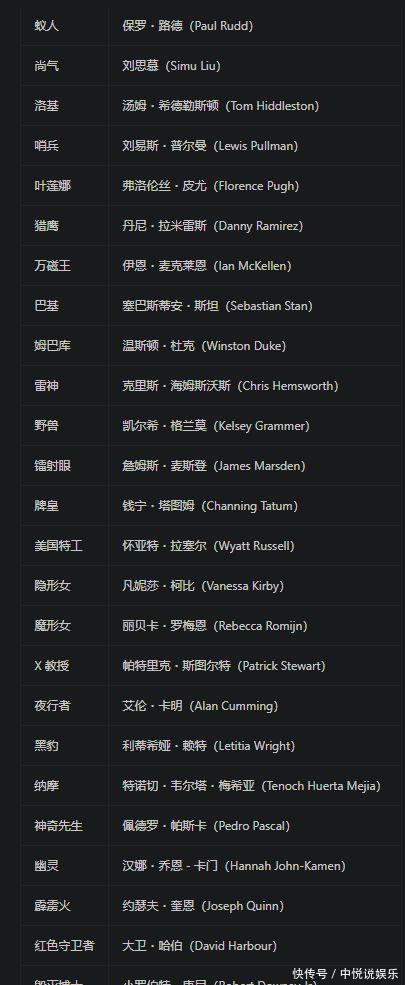 其他卡司声威包括老版《X战警》的X教化、万磁王、镭射眼,《复联》声威则还有洛基、黑豹、蚁东说念主、尚气等东说念主,以及新神奇四侠的石头东说念主、轰隆火、雷霆特攻队两个MCU新团队加入,不错说是情愫大乱炖。
