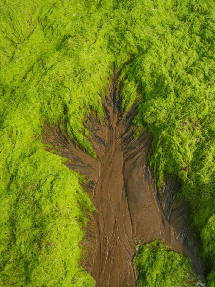 这些看似静默的纹理,实则是海岸线上最活跃的生命收集。潮流沿着“树干”与“枝杈”进退涨落,如同运输营养的血脉,将泥沙、营养与能量一语气接续地运输到滩涂深处。