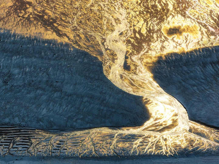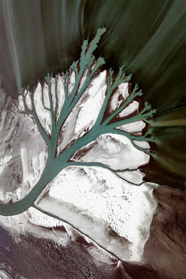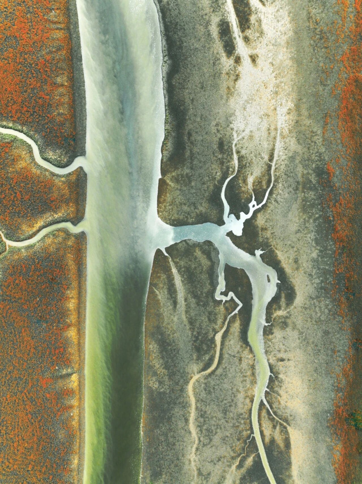 在中国长达1.8万公里的陆地海岸线上,潮流物换星移地冲刷着滩涂,雕镂出无数鬈曲周折的潮沟。从高空鸟瞰,这些潮沟宛如一棵棵倒生的巨树,根系朝天,枝干深刻大海,东谈主们诗意地称其为——“潮汐树”。