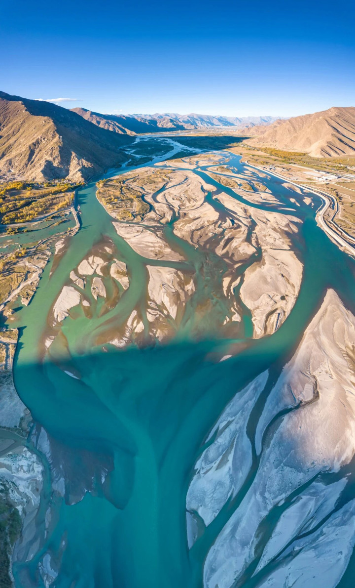 西藏拉萨河辫状水系 “枝杈”错综复杂如“大榕树”