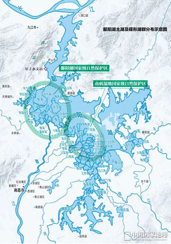 鄱阳湖主湖及碟形湖群区分默示图
