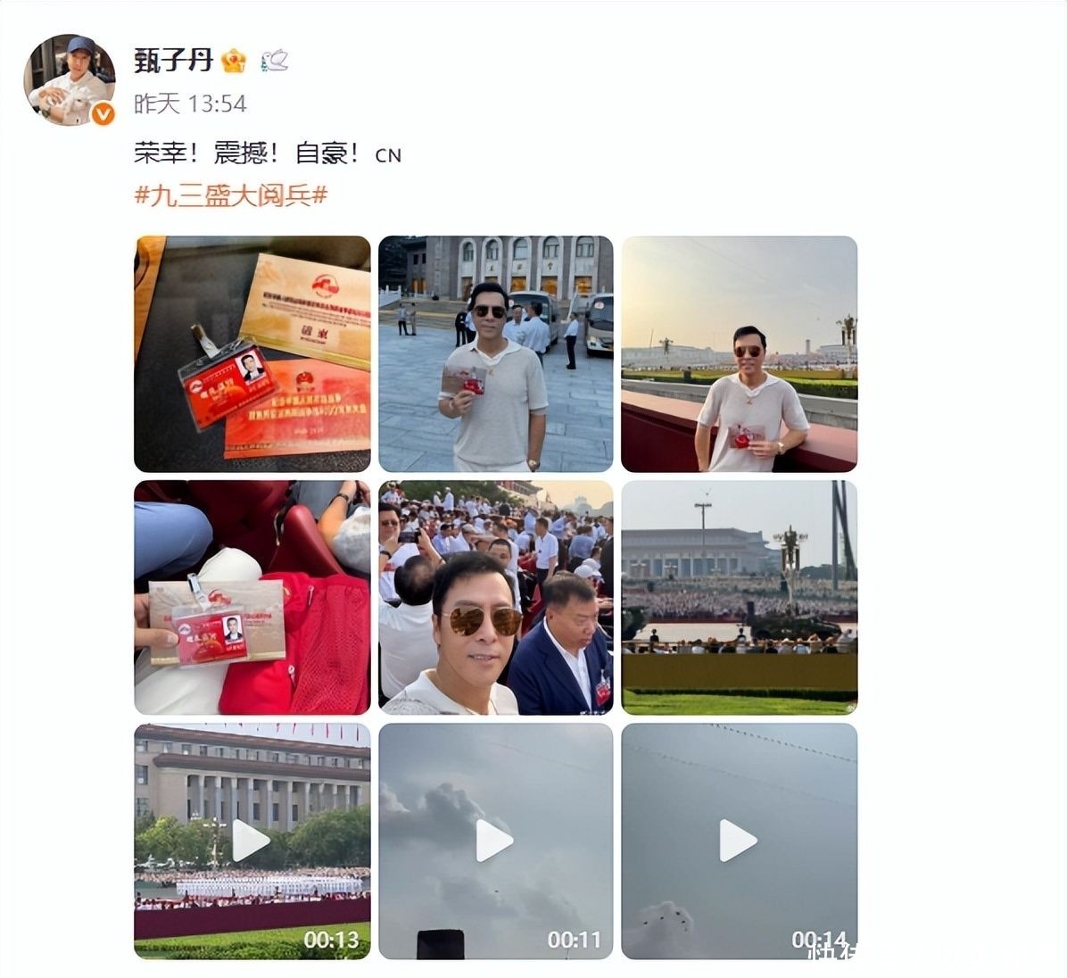 热枕昂扬的他,在个东说念主外交平台账号上,晒出了我方参加检阅庆典的相片。