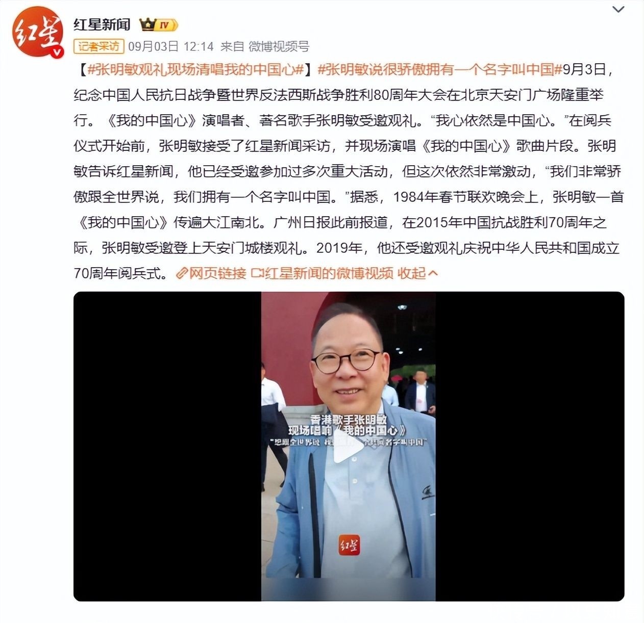 张明敏对故国的付出与孝顺。