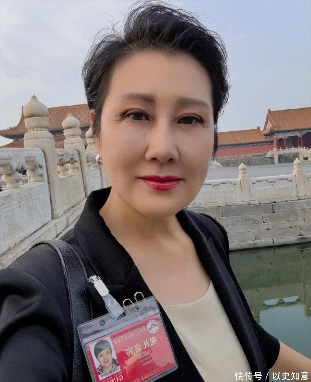 平安黑西装的她,笑貌明媚的记载下我方的这一刻。