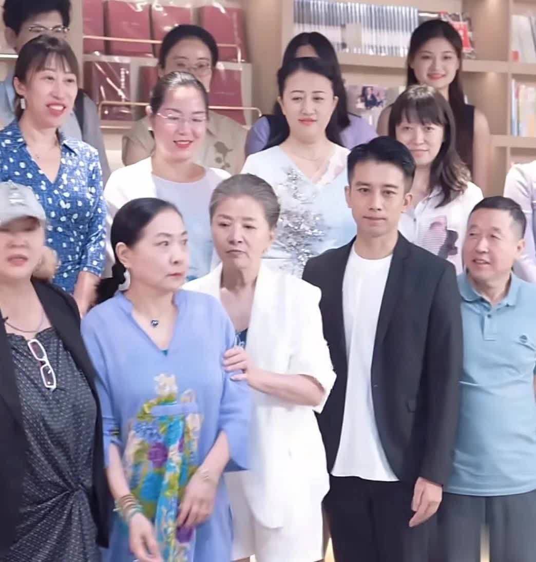 在合照范例,沈丹萍挑升把C位让出来,站在一边恭候迟蓬。