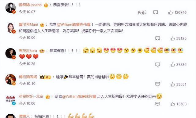 这对俊男靓女历经了四年的分分合合,终于迎来好结局。 除了网友送来了祝愿,还有英皇的共事们前来谈喜。 霍汶希行为英皇的牙东谈主,随同陈伟霆走过演艺路上的风风雨雨,看到他走向幸福,忠诚的替他感到得意。