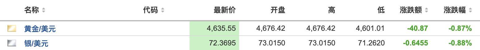 金融商场响应分化。好意思股期货全线小幅下落,纳斯达克100指数期货下落0.02%,标普500指数期货下落0.18%;亚洲股市小幅高开,随后涨幅扩大,日经225指数涨1.23%;韩国首尔综指涨1.95%;黄金下落0.87%至约每盎司4636好意思元,白银跌0.88%至约72好意思元。