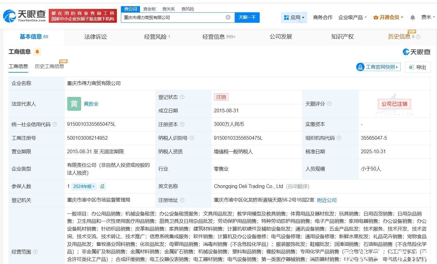 重庆市过劲商贸有限公司建造于2015年8月,法定代表东谈主为黄胜全,注册成本3000万东谈主民币,计较范围包括办公用品销售、机械征战租出、办公征战租出做事等。鼓吹信息涌现,该公司由过劲集团有限公司全资捏股。