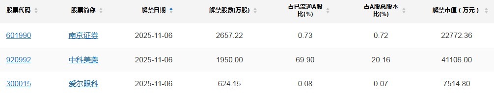 【限售解禁】
