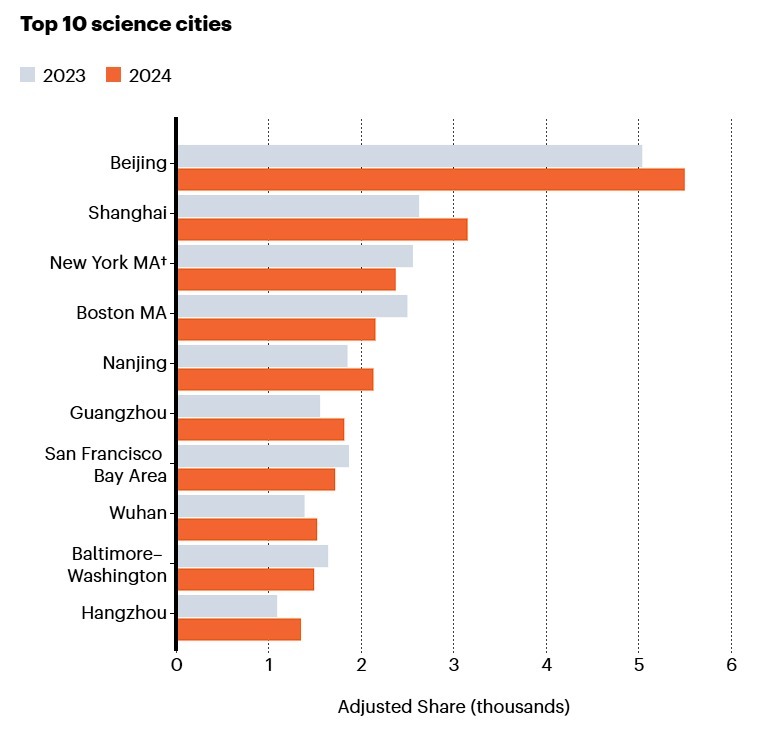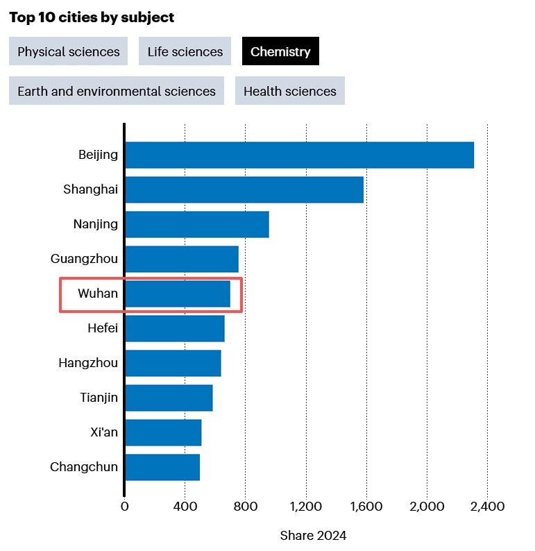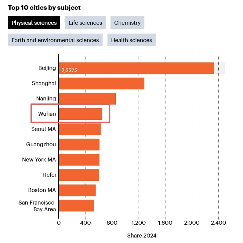 这次名次跟踪了各城市在高质料当然科学期刊上的科研产出。除北京、上海稳居前哨外,南京、广州、武汉、杭州踏进众人十强。增刊还分析了学科推崇,中国城市在化学、物理科学、地球与环境科学范围上风显着,以致初次包揽化学范围众人前十。其中,武汉在物理科学、化学和地球与环境科学范围分歧高居众人第4、第5和第6位,流露出淳朴的详尽科研实力。