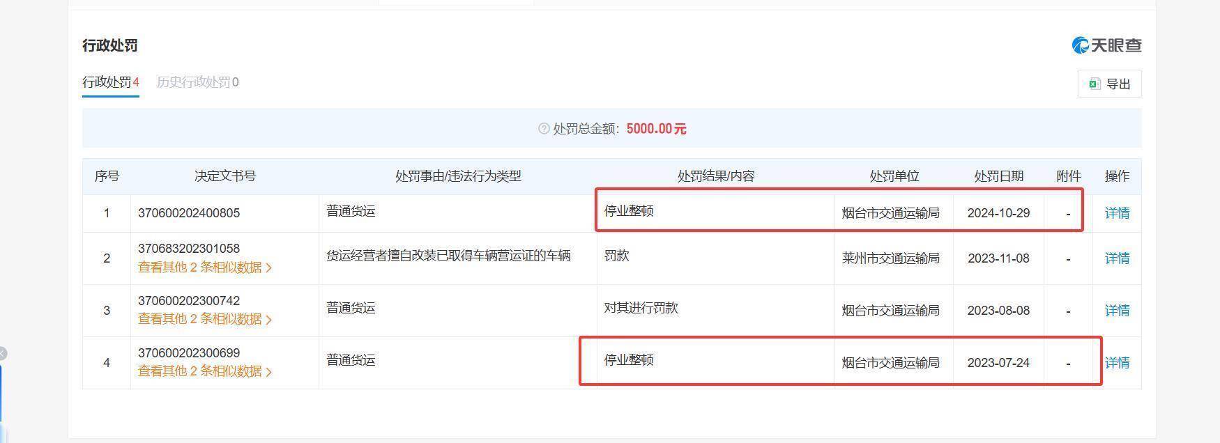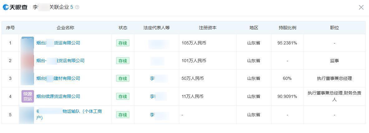 天眼查证实,烟台续源货运有限公司诞生于2016年11月24日,法定代表东谈主为李某某,李某某依然烟台当地多家货运及建材公抓法定代表东谈主及实控东谈主。烟台续源货运有限公司存在多项行政处罚记载,其中,2023、2024年邻接两年被破产整顿。处罚事由载明,涉事企业存在1年内非法超限输送的货运车辆向上本单元货运车辆总额10%,货运想象者还存在私自改装已获得车辆营运证的车辆等非法四肢。