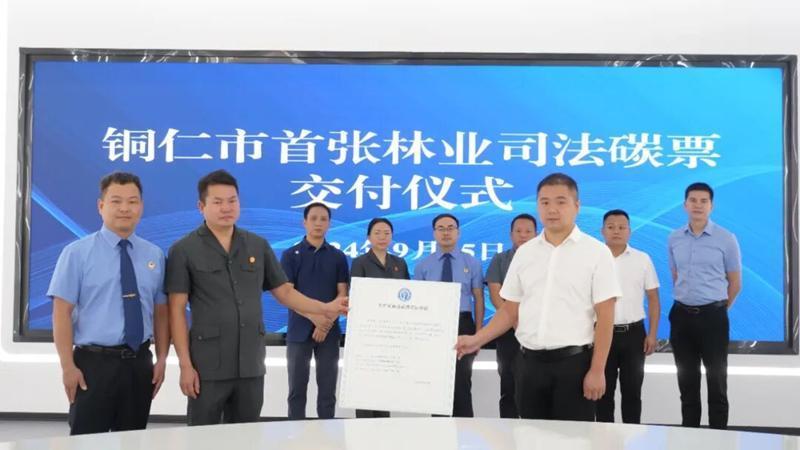 积极探索“公益诉讼+林业碳票”办案形状,以司法赋能碳票来去助力生态家具价值杀青,其中办理的姚某某等东谈主滥伐林木刑事附带民事公益诉讼案,推动贵州1号省级林业碳票在江口杀青来去。